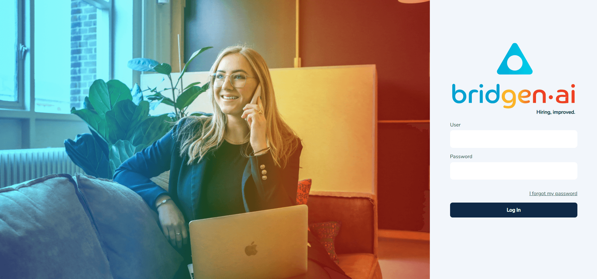 No primeiro login, a tela de autenticação mostrada abaixo (Figura 1) será exibida. Digite o nome de usuário e a senha fornecidos pela equipe Bridgen para acessar a plataforma.